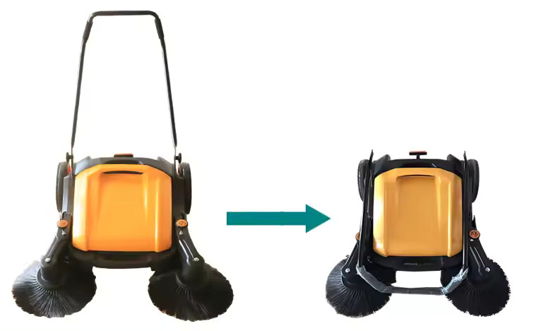 - Handkehrmaschine mit einem Fassungsvermögen von 40 Litern, ein praktisches Gerät für die Sauberkeit von Außenflächen wie Höfen, Gehwegen, Parkplätzen oder Plätzen.