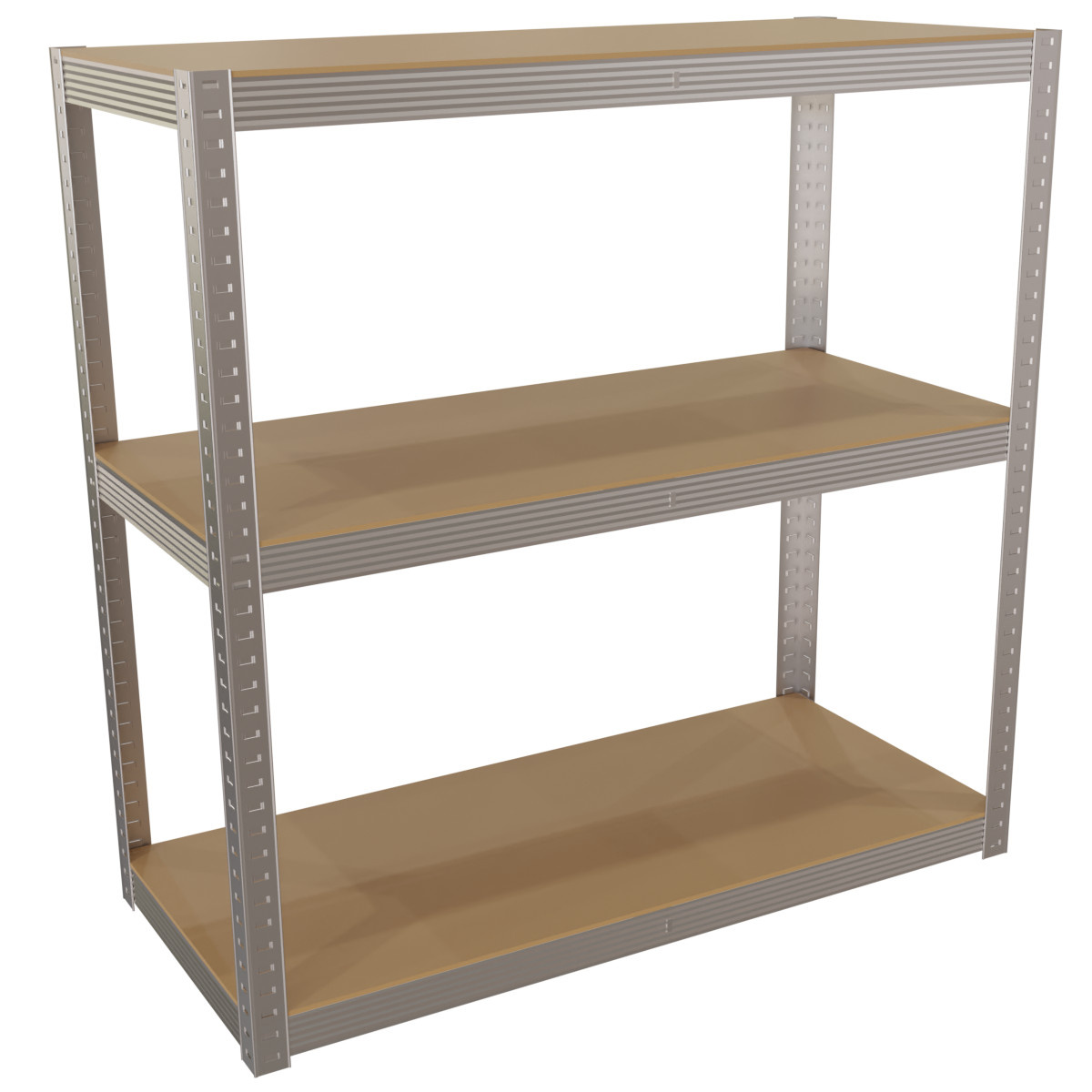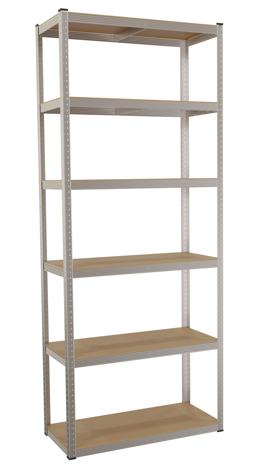 W regałach pod każdą z półek znajduje się bardzo wytrzymała poprzeczka wzmacniająca, która wpływa na całą konstrukcję oraz sprawia, że każda z półek wytrzyma znaczne obciążenia.