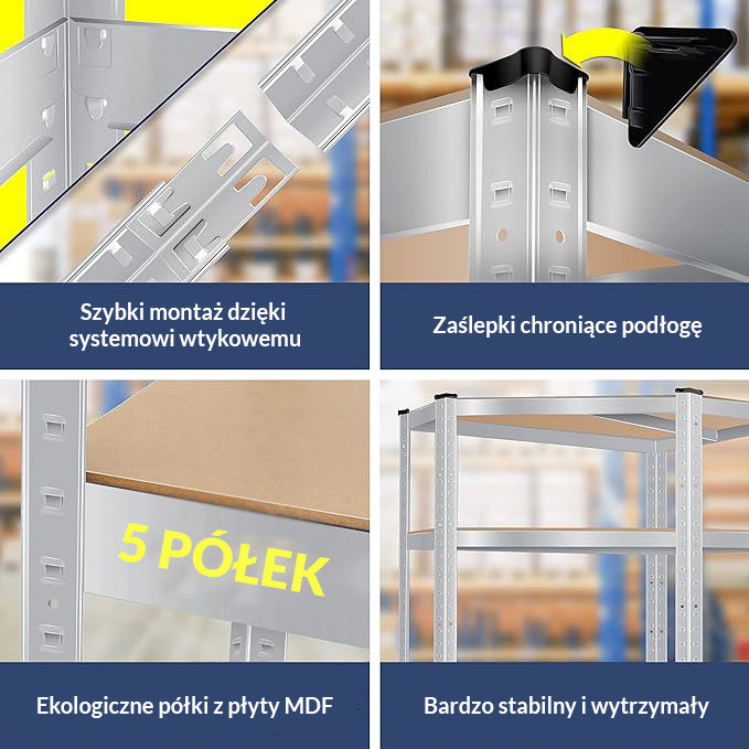 Regał narożny Metalowy pięciopółkowy 180x90x90cm RK-30 MAMUTH to niezawodne i wszechstronne rozwiązanie przechowywania, które sprawdzi się w różnych miejscach. Jego solidna konstrukcja, łatwość montażu i funkcjonalność sprawiają, że jest to doskonały wybór dla każdego, kto potrzebuje dodatkowego miejsca do przechowywania.