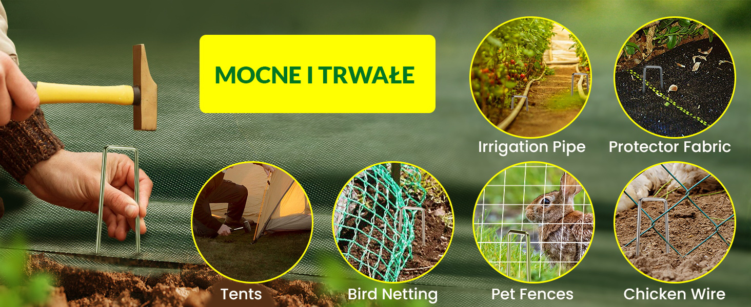 Ze względu na swoje duże wymiary, metalowe szpilki gwarantują stabilne przytrzymywanie agrowłókniny, agrotkaniny itp., utrzymując je blisko ziemi.